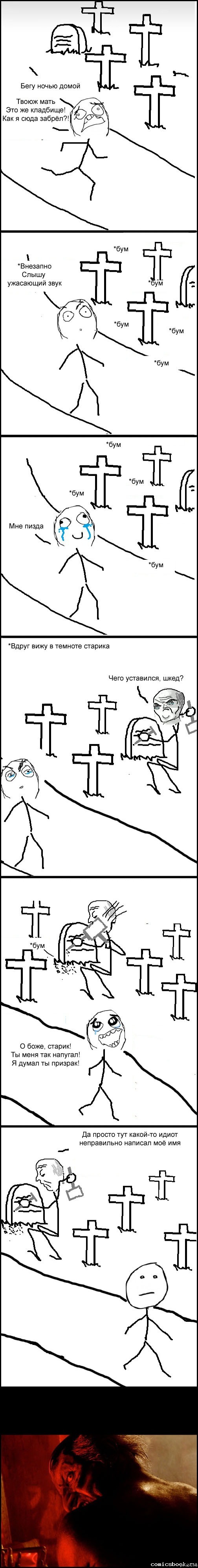Ночное кладбище -единственное место, где пьяного мужика с битой испугаешься меньше, чем маленькую девочку в платьице с косичками и бантиками.