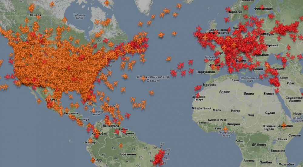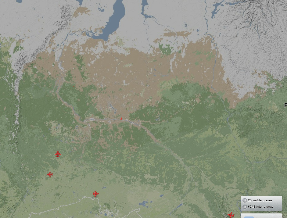 Красной точной показан город, а в округ - пустота (Всмысле, ни одного самолета. Сайт ориентирован не на Россию, а на Европу и Америку.