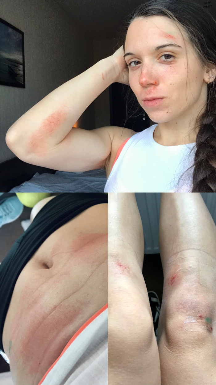 Мы ещё долго потом с медсестрой искали все травмы, но в полной мере они дали о себе знать ночью, когда начали прилипать к простыни, а на следующий день заиграли новыми красками в солёной морской воде)