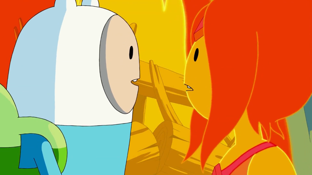 В конце 3 сезона Бубльгум "мягко отказывает" Финну при его попытке лечь ей на ноги как сделал это Джейк, Финн уходит в себя и начинает страдать дома, Джейк решил разрулить ситуацию и найти ровесницу принцессу Финну. Ей оказалась Принцесса Огня (или просто Флейм). Ее отец держал ее взаперти у себя но отпустил ее к Финну (благодаря Джейку). Хоть он и получает от нее пощечину но сразу же влюбляется в нее. Так начинается арка Финна и Флейм и даже Бубльгум начинает "ревновать" к Флейм, хоть она и говорит что им нужно перестать быть вместе ради безопасности мира, она даже думала убить Огненную Принцессу, но не вышло, Финн её спас.