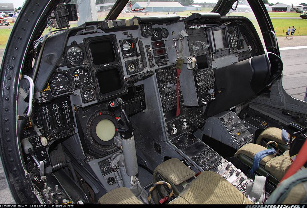 В кабине экипажа были смонтированы два катапультных кресла производства английской компании «Мартин-Бейкер». Данные кресла гарантировали экипажу самолета безопасное катапультирование через закрытый фонарь кабины, что и было доказано на ранних версиях штурмовика еще во Вьетнаме. Подвижную часть фонаря кабины можно было сдвинуть назад. На приборной доске пилота были размещены два крупных индикатора (вертикальной и горизонтальной обстановки) и порядка двух десятков традиционных стрелочных приборов. У штурмана имелся крупный индикатор радиолокационной станции, при этом органов управления штурмовиком на рабочем месте штурмана не было.