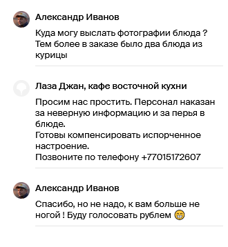 Но не в этом суть моей злости, я решил оставить отзыв о данном заведении на платформе 2GIS https://go.2gis.com/6psc59 Где мне официальный аккаунт ответил что сегодня заказов из курицы не было 😆🤓...