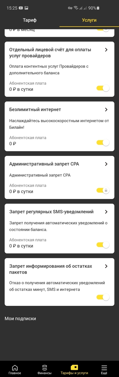 Вот как раз эта функция - "Запрет регулярных СМС уведомлений" и недоступна на моем тарифе