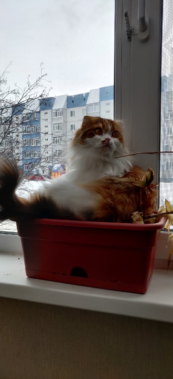 Метиска, папаша - перс, мамаша - ангорская. А хвост с рождения такой, поломанный. Ей норм. Пакетики любимые только цепляются вечно)