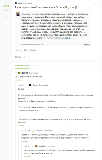 Гопники будут пасти дипломированных у магазинов, чтобы изъять приобретенную продукцию. Или появятся спекулянты, которые покупают с дипломом, а продают - без. Помнишь сухой закон в штатах и как сильно на этом нагрелась мафия?