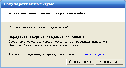 Однажды отправил такой отчет с пиратской XP, через некоторое время перезагрузил компьютер, и не смог загрузить не одно приложение, т.к. файлы с расширением ".exe" у всех программ куда-то пропали. Нормальное такое решение проблемы.