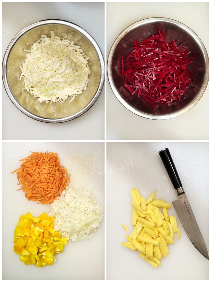 Так что, как только нашинковали свеклу, залейте её уксусом - пусть подмаринуется.