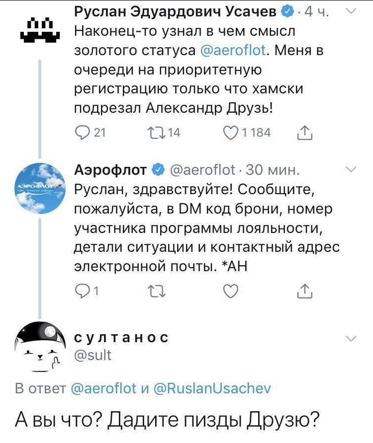 11538 Kass1679 Улыбнись! А действительно?... 1 год назад Юмор Скриншот Мат Комментарии Руслан Усачев X (Twitter) Аэрофлот Александр Друзь 286 9 8 2 Ещё 0