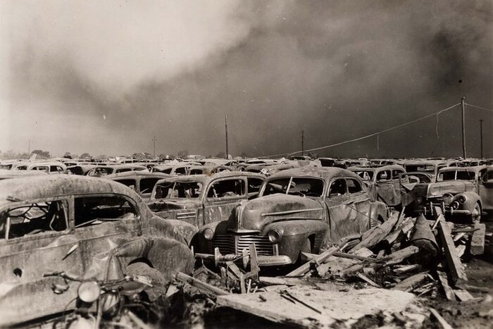 Итого. Погибло почти шестьсот человек, разрушено две трети города и три четверти промышленности. Убытки на сто лямов еще тех долларов.