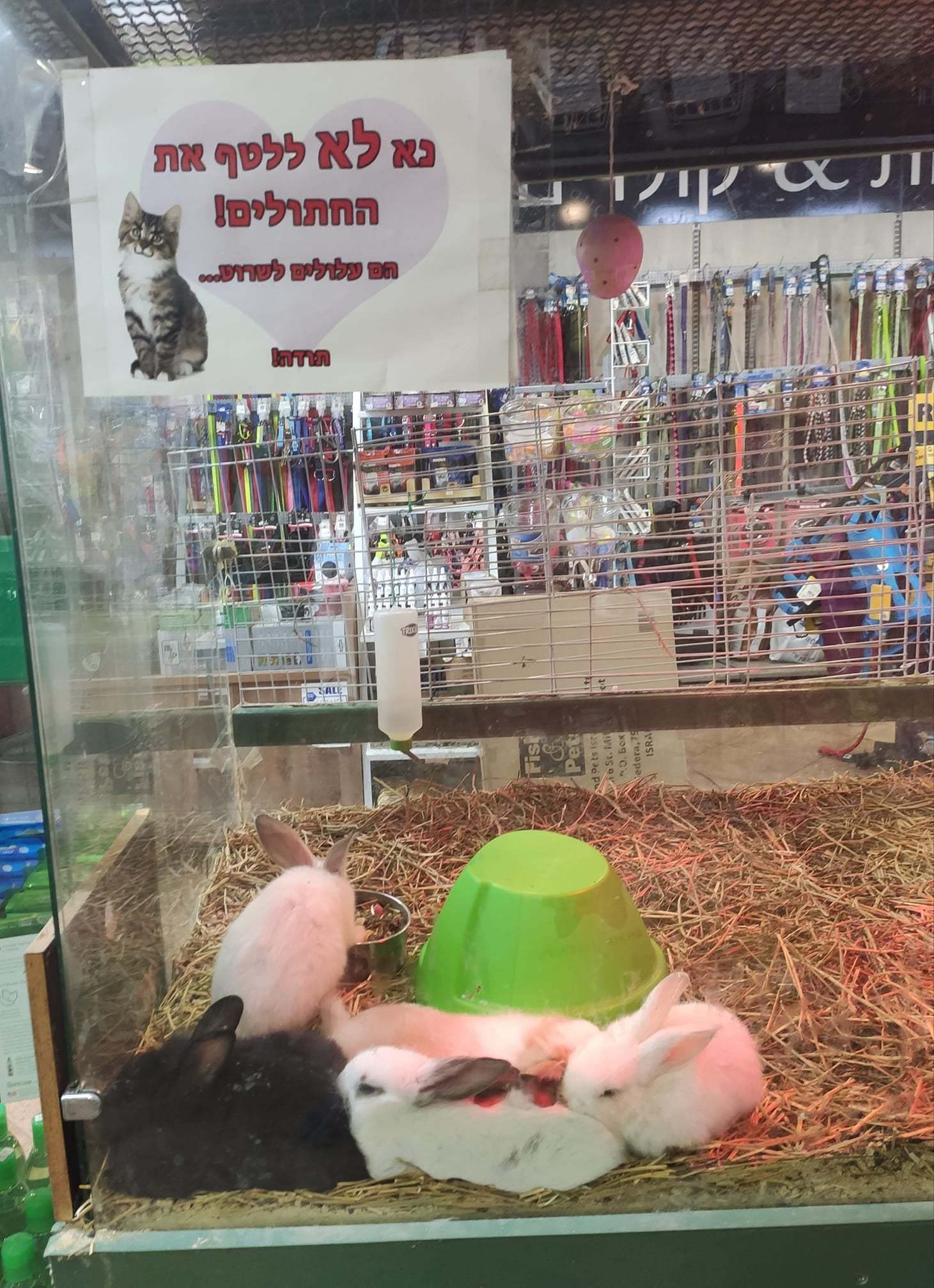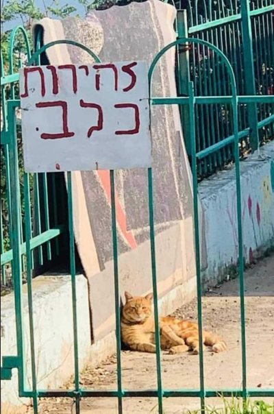 текст объявления: Пожалуйста не гладьте кошек! Они могут вас поцарапать... (иврит)
