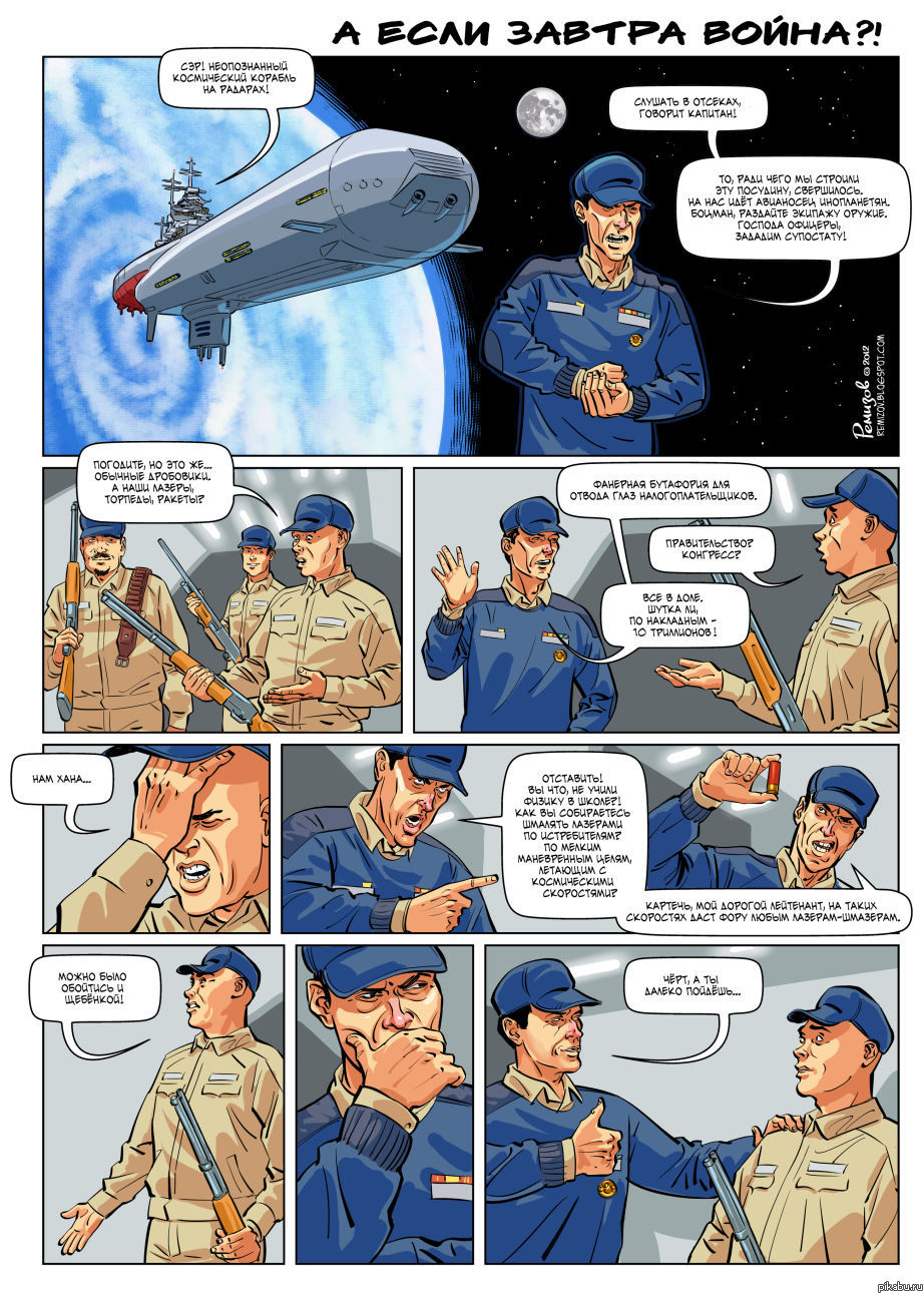 Кому реально интересно посмотреть как будет выглядеть бой на орбите(не в космосе) скачайте симулятор Orbiter, мы с другом БИТЫЙ ЧАС пытались пристыковаться к мкс, гоняясь за ней по орбите. Чуток газа - и она в 35 КИЛОМЕТРАХ сзади, обратная тяга и мкс улетела за 3 секунды на 70 КИЛЛОМЕТРОВ вперед ;) Без рассчетов и синхронизации скоростей вы даже заметить космический корабль не успеете. МКС В десять раз быстрее пули носится 7км в СЕКНДУ!