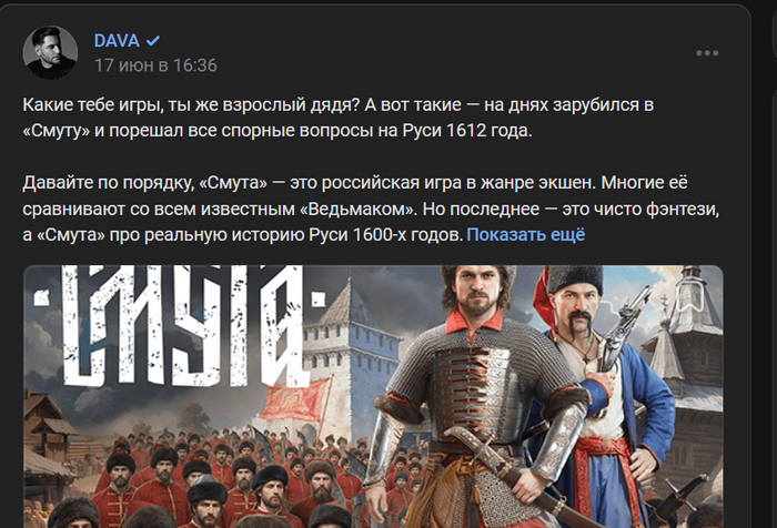 728 KorkaH А где ERID ?2 1 год назад [моё] Компьютерные игры Gamedev VK Play Длиннопост Смута (игра) Скриншот 106 26 4 4 1 Ещё 0