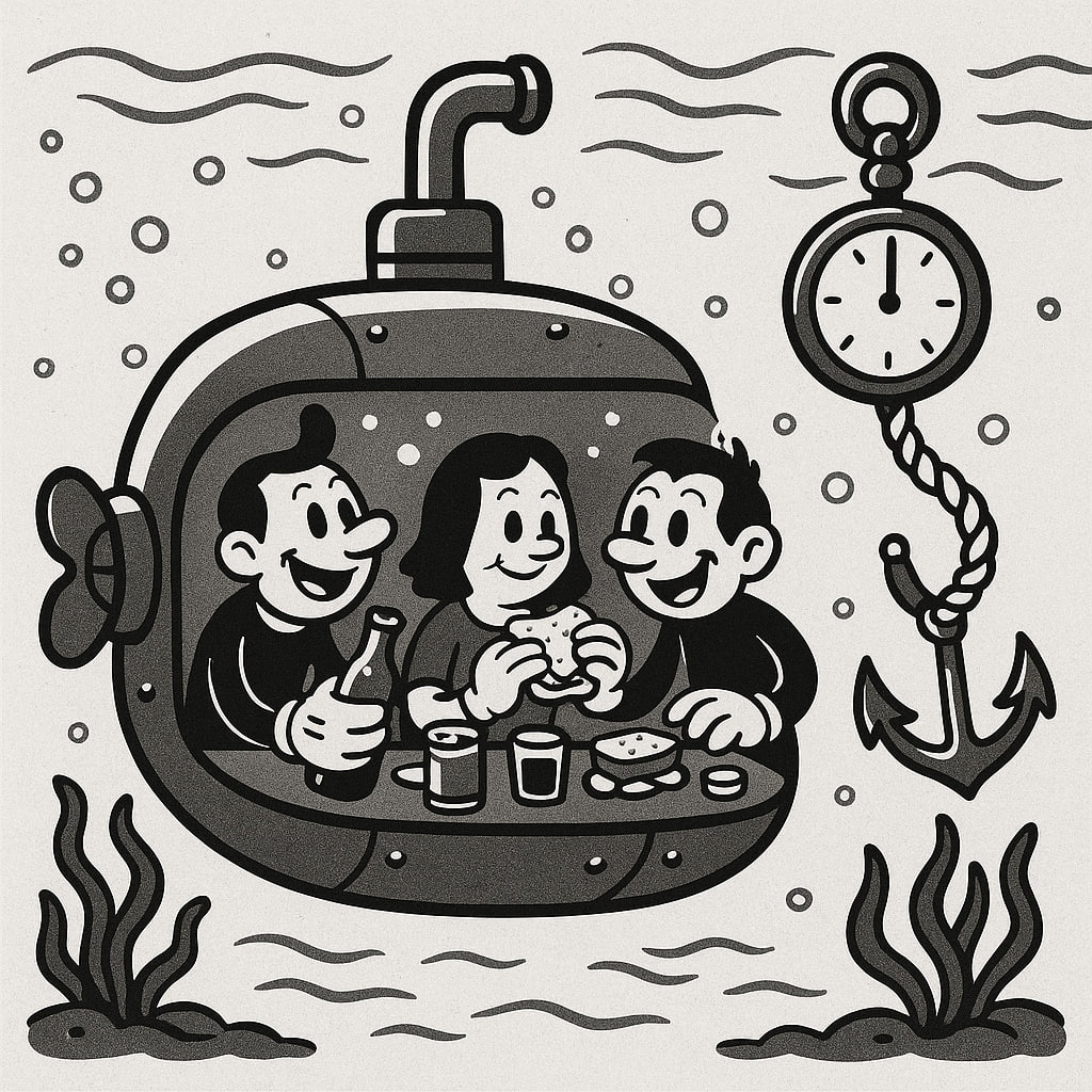 Знакомый всё в подводную лодку хотел поиграть. Набрать бухла, хавки, завесить окна, и убрать часы. И несколько недель так тусить толпой, пока не надоест. Чтоб во времени потеряться и жить по своему графику, независимо от времени суток. И потом посмотреть сколько времени прошло.