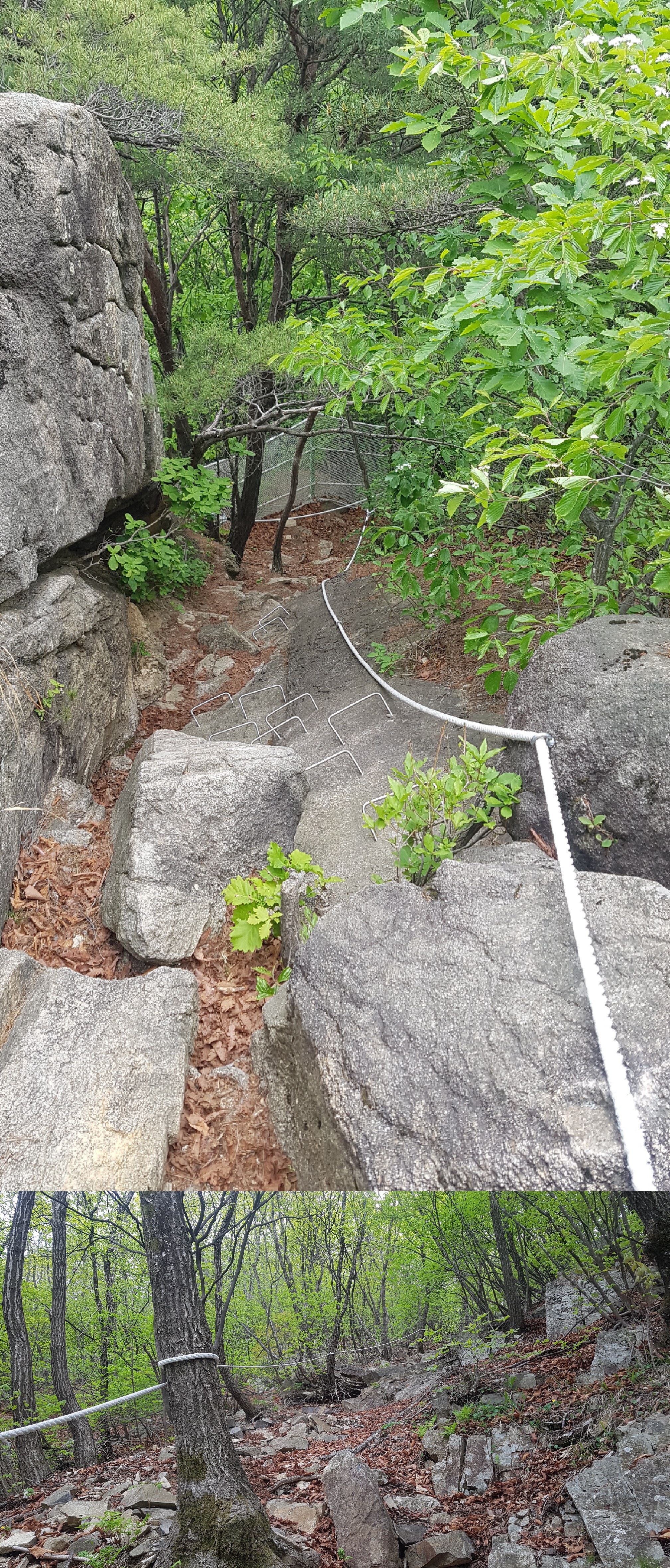 Вот, что мне нравится в Южной Корее, так это инфраструктура в горах. Всё сделано для людей. К красивым местам проведены тропы, трудные участки обустроены лестницами, ступеньками, скобами и верёвками. Запрет на розжиг огня я тоже принимаю как должное.