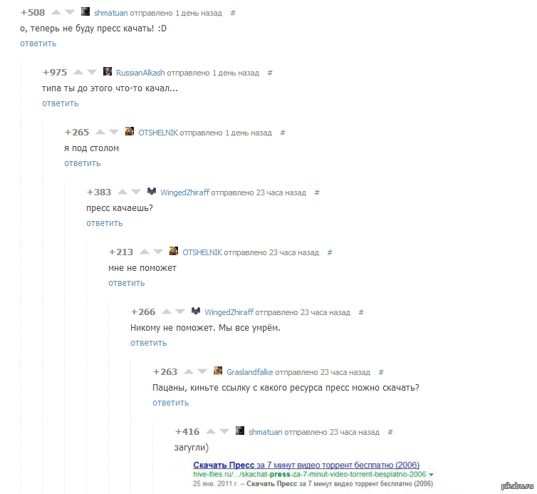 Whitesnake 12 лет назад А как вы качаете пресс?) http://pikabu.ru/story/_1233842 Пресс Комменты на Пикабу