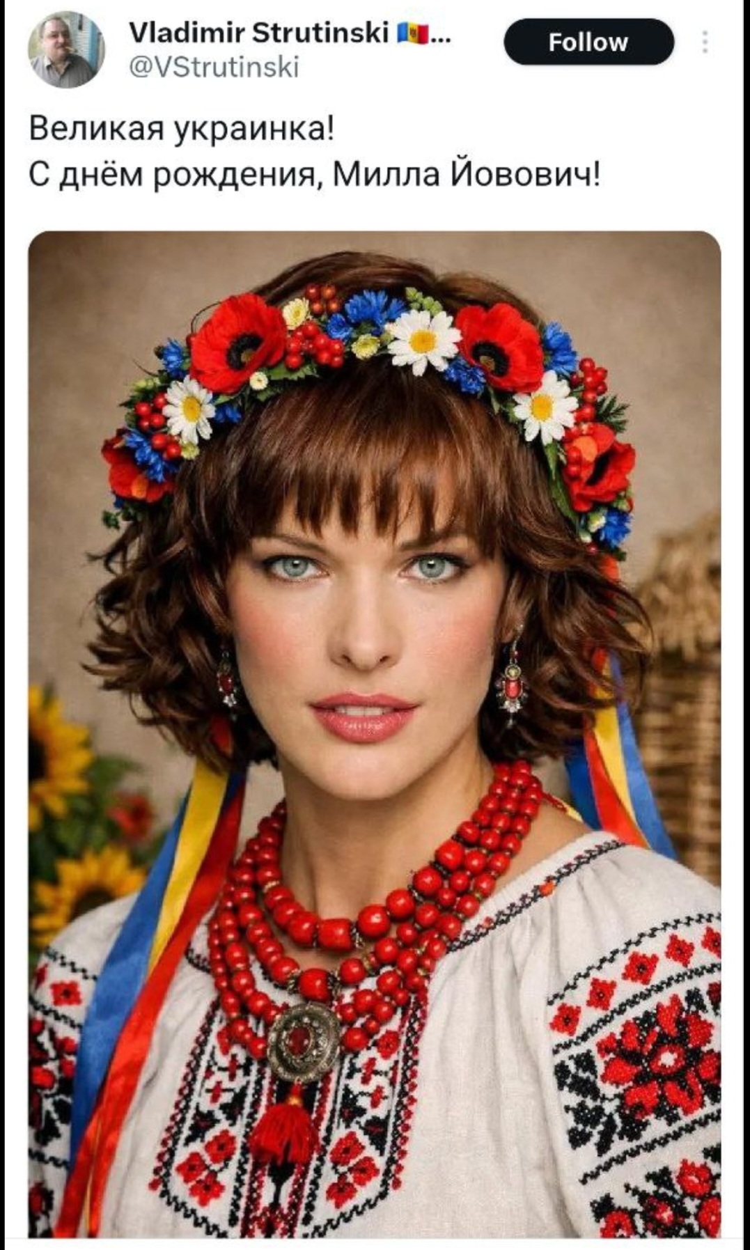 380 morevnaM Политика А Мила в курсе? 1 месяц назад Она всю жизнь считает себя русской😀 Источник X (Twitter) Россия Политика Скриншот Актеры и актрисы Милла Йовович 190 28 5 2 2 Ещё 0