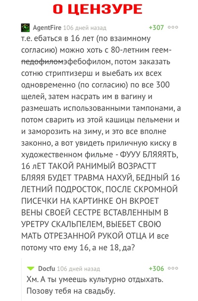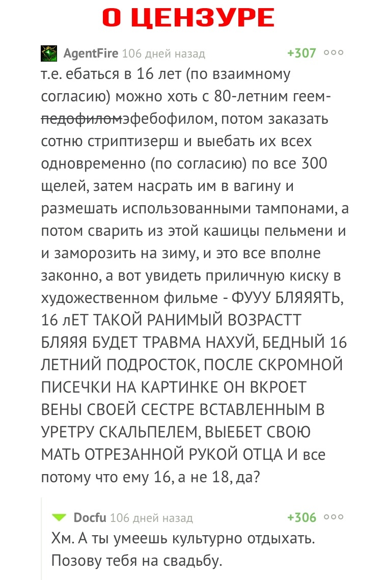 В одной книжке, у которой очень много поклонников по всему миру, написано, что можно в 6 лет замуж выходить, а в 9 лет трахаться начинать. Если же сказать что-то плохое про эту книгу, то могут голову отрезать. Но это, понятно, другое. Это традиционные ценности. Тут Мизулина не возбудится. Это ж не на поцелуи смотреть в 12 лет!