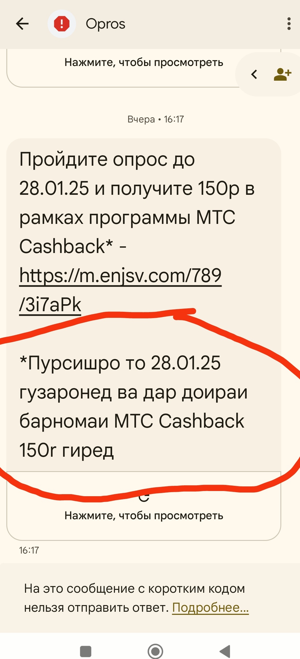 Мне стали приходить СМС на прохождение опроса. С ВЦИОМа кажется, потому что я давала согласие на прохождение опросов только в ВЦИОМ. Я сегодня открыла такую СМС. И там продублировано сообщение не на татарском, не на башкирском, не на языках Кавказа.