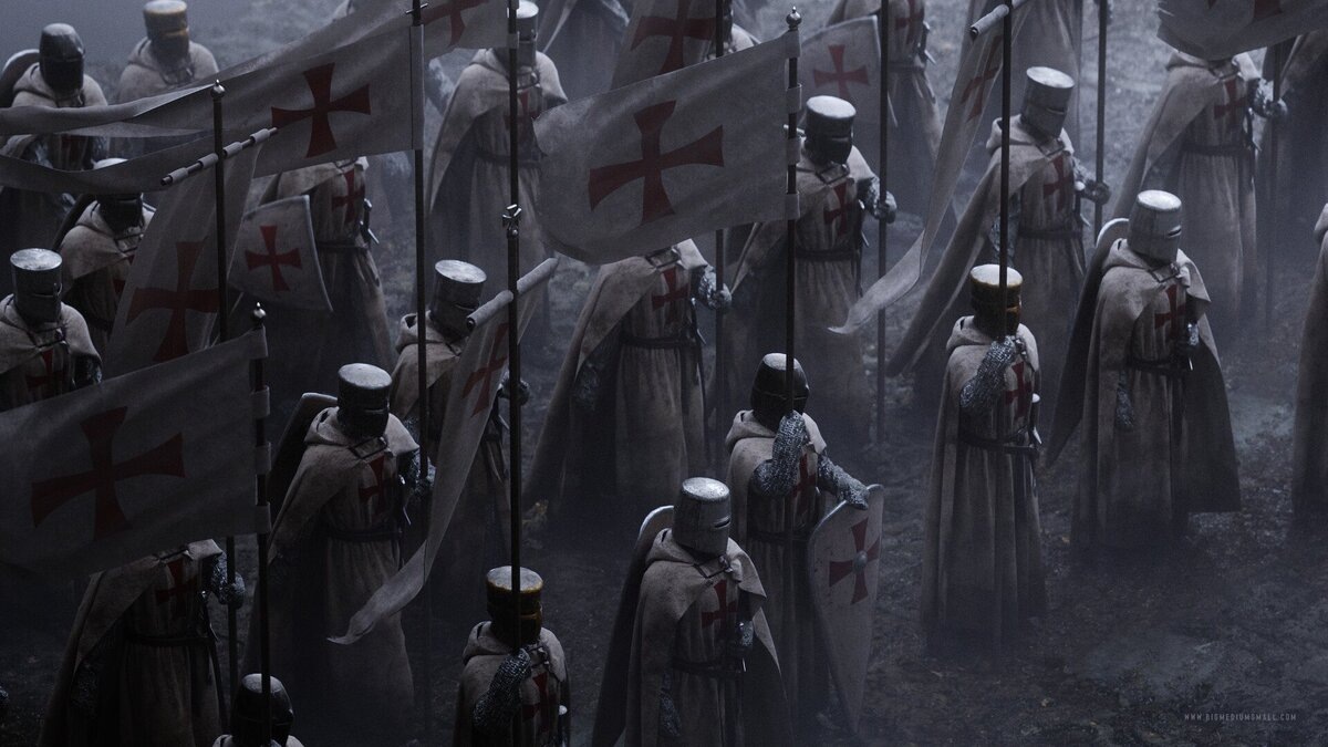 Вот только де Рифорд почувствовал неладное (слишком уж их приятель нервничал, да и прислуга куда-то подевалась) и заколол де Ларси. А дальше была запертая дубовая дверь содрогавшаяся под ударами людей мёртвого барона лежащего в луже собственной крови, недолгие сборы, надетая броня, хищно лязгнувшие металлом закрытые забрала шлемов и... двое рыцарей плечом к плечу двинулись по коридору вперёд расчищая себе мечами дорогу. Они не слишком любили друг друга, но сейчас это было неважно. Оба были опытными воинами прошедшими не одно сражение. Дорогие доспехи от лучших оружейников сохраняли им жизнь, верная рука разила и рубила превосходившего числом противника. Клинки скрежетали друг о друга высекая искры, крепкая сталь рубила щиты, распускала сыпавшиеся на пол кольца кольчуг, сминала простые шлемы. Проклятия, крики боли и вопли ужаса смешались в какофонию отчаяния. Этих двоих молча делавших свою работу было не возможно остановить. За спиной тамплиеров были только мёртвые тела ибо раненых де Флонар и де Ридфорд добивали. Так делали все кто воевал на Ближнем Востоке, даже истекающий кровью, умирающий враг опасен.