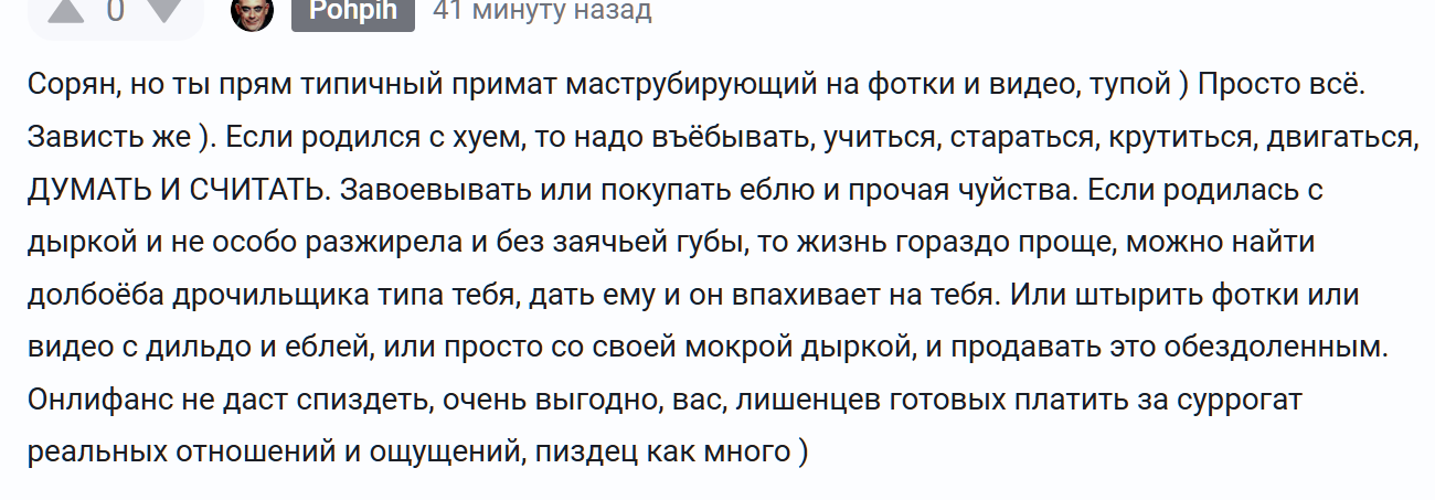 Pohpih А не спеть ли нам песТню.. ) 1 месяц назад Тут я просто вставлю ответ на комент из 18+ в защиту какой-то серости, пытающейся продать в ТГ изображение своих сисек и дырочек, а вы уже накидаете своих мнений, неоспоримо правильных и единственно верных ) Короткопост Рассуждения Мат Логика 5 Ещё 0