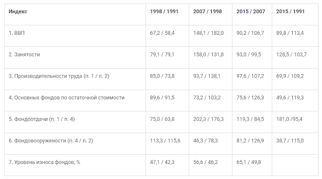 Чисто в промышленности например ситуация даже хуже чем показано здесь,вытягивает прочая экономика где в секторе услуг,да и в целом во всем труде не связанным непосредственно с производством падение производительности было куда меньше а то имелся рост
