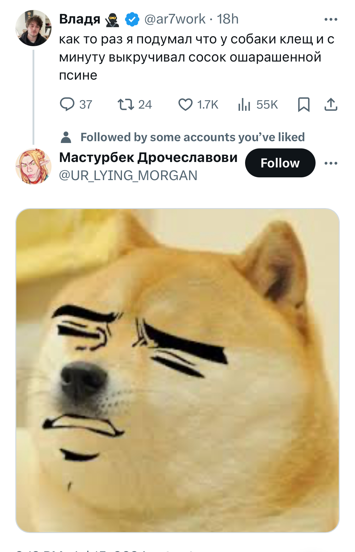 13 Gnevoborod 1 год назад А она и не против Скриншот X (Twitter) Собака Соски Странный юмор Комментарии Мемы Doge 1 Ещё 0