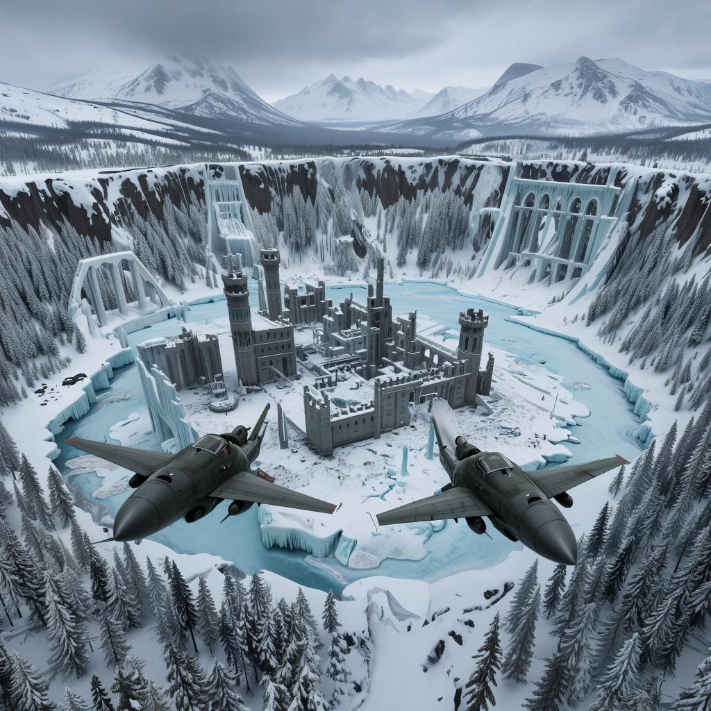Под серебристыми крыльями машины мелькнули скальные отроги. Взгляду открылась небольшая долина, поросшая… нет, деревья там не росли, они вмёрзли в почву, в снежный покров, превратившись в сталагмиты в ледяной пещере без потолка, без конца и края. Синяя птица снизилась почти до верхушек страшного леса, скользнула в самый центр долины, где мёртвые деревья расступались вокруг намертво вымерзшего озера, подняла тучу снега, разворачиваясь над белой равниной. Жнецы прочертили белые полосы над шпилями Чертога.