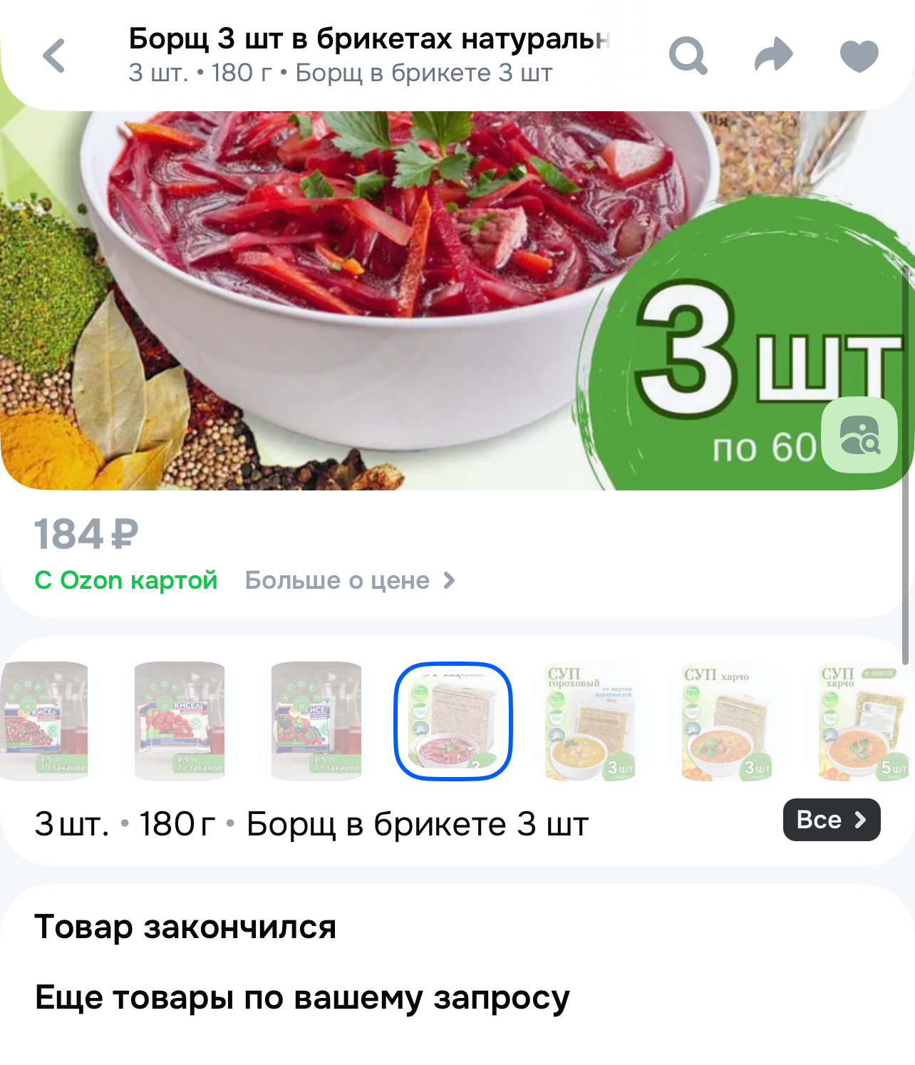 В составе у нас капуста, свекла, соль, картошка, соевое масло, бульон говяжий, лук, морковь, томатный порошок, сок свеклы, сахар, зелень сушеная, ароматизатор говядина и всего по мелочи.