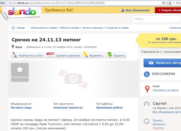 Всё правильно, у тебя обьявление про сбор на митинг партии регионов. Ибо майдан то стоит круглосуточно, коли ты забыл, а в это время тогда как раз митинг ПР делали.