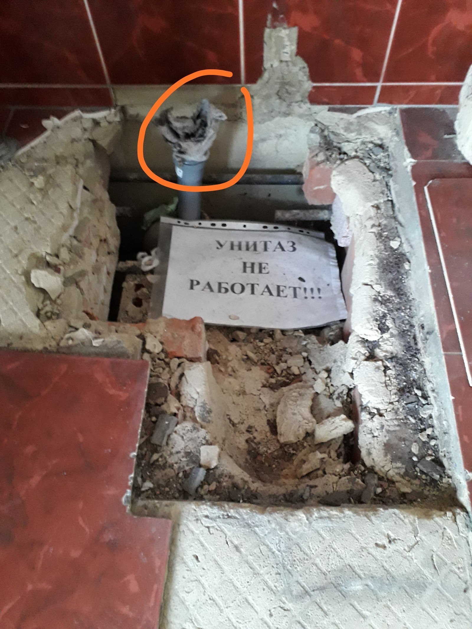 Эм) это был женский туалет возле учительской, где жена в тот момент писала заявление. Хоть учеников в школе не было совсем, но все же.. вдруг кто-нибудь бы зашел? Даже в момент, когда я снимал эту дыру) Наверное подумали бы, что я какой-то лютый извращенец, прусь с фоток унитазов, в которые по своим делам ходят школьницы)))