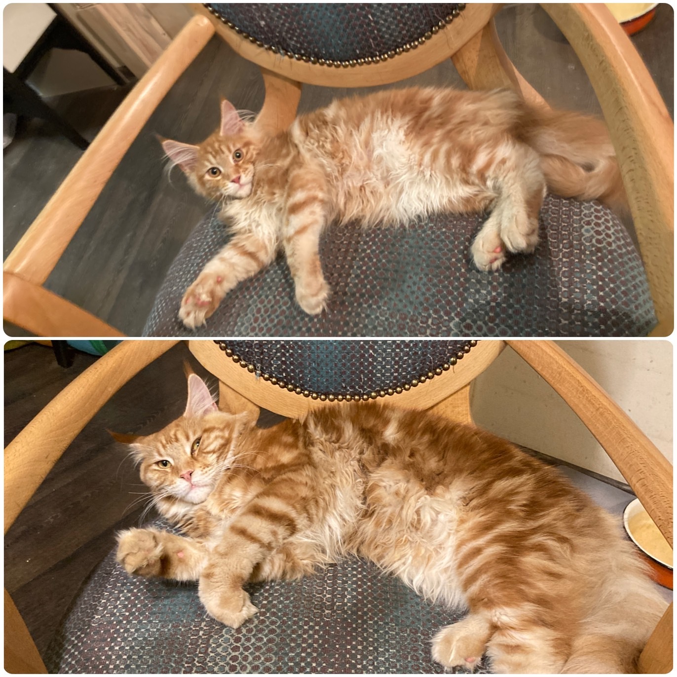 Прошло пять месяцев. И вместо сладкого испуганного котеночка у нас теперь наглый избалованный рыжий пиздец. )
