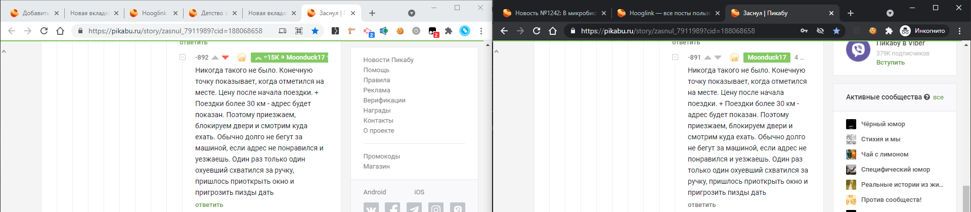 Слева - скриншот под моей учеткой, справа - скриншот в режиме инкогнито: