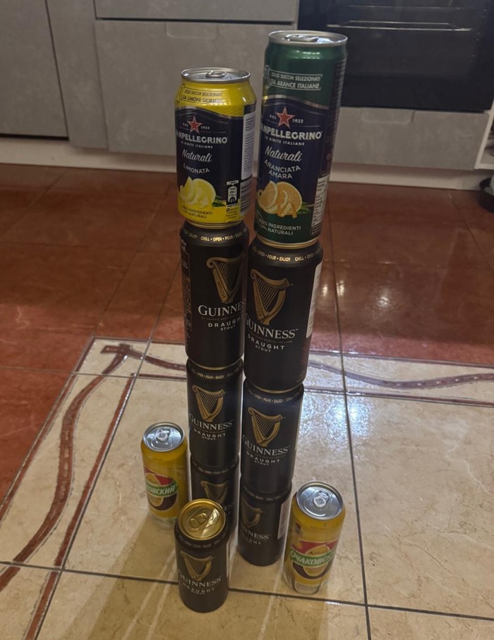 Оптом свой Гиннесс не покупает, запас пива дома не держит, потому что иначе ему вообще не остановиться. Покупает строго дневную норму. При этом даже эту норму прячет по дому, а частично оставляет стоять пакеты в парадной, чтобы не слушать ворчание от молодой жены. Он тут прикинул — за прошлый год на свои банки тёмного Гиннесса он потратил примерно полтора 🍋 🍋 за год.