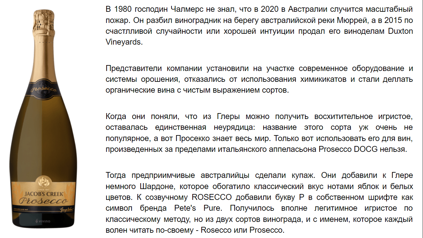- В Австралии есть свой Просекко, точнее PRosecco, который они не могут экспортировать по ряду законодательных причин об этом я напишу чуть ниже.