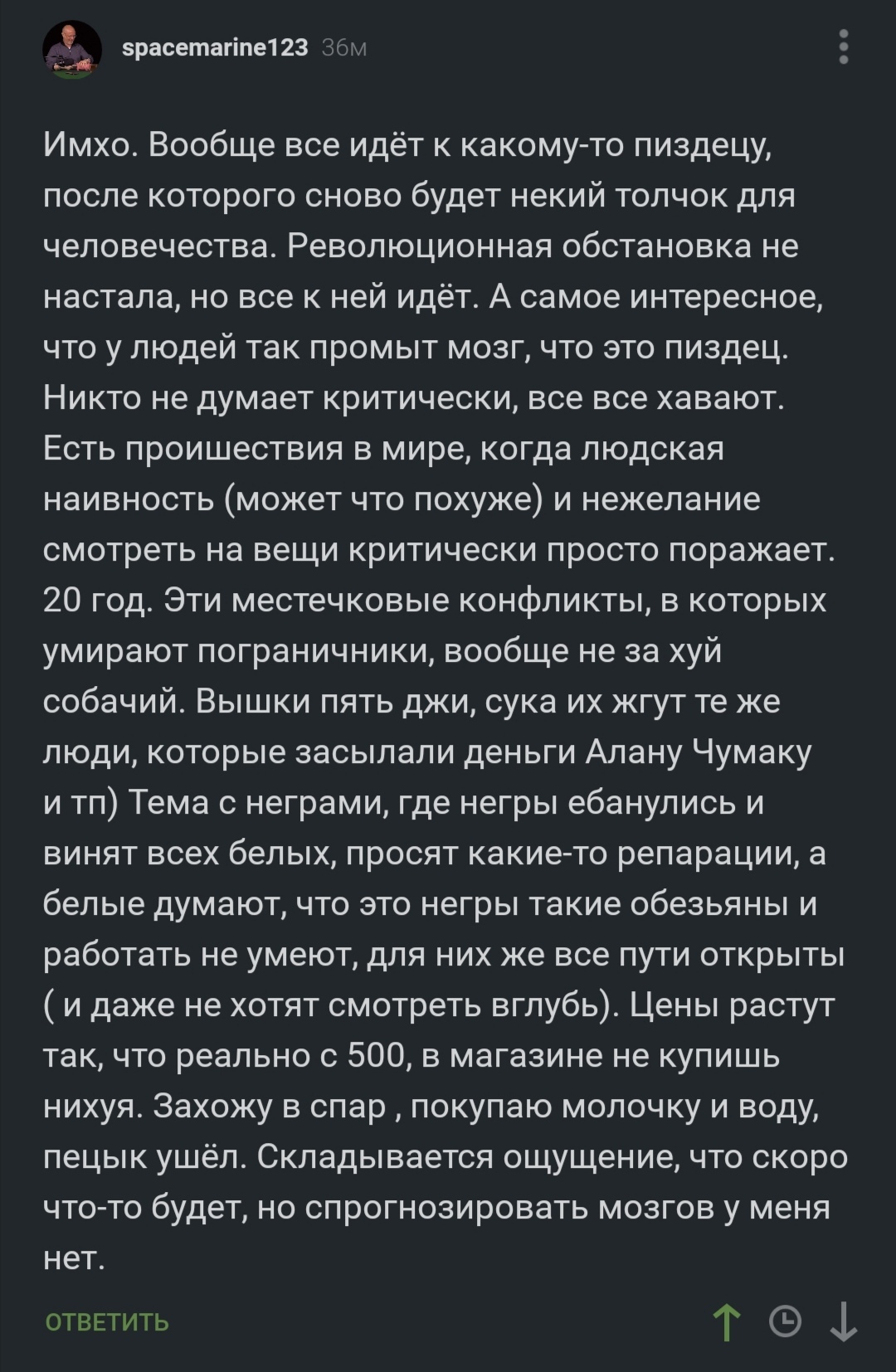 23 PuNiSheR2by 5 лет назад А ведь и правда #comment_179178685 Комментарии на Пикабу Картинка с текстом Апокалипсис 2020 Ещё 0