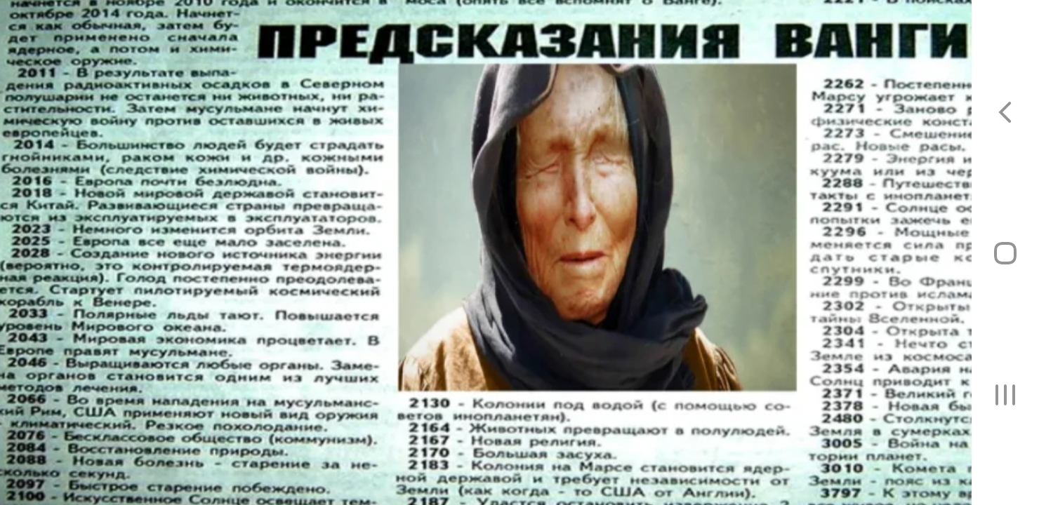 Ещё там говорилось что Европа станет мусульманской, а 3 мировая начнётся с войны Украины и России.