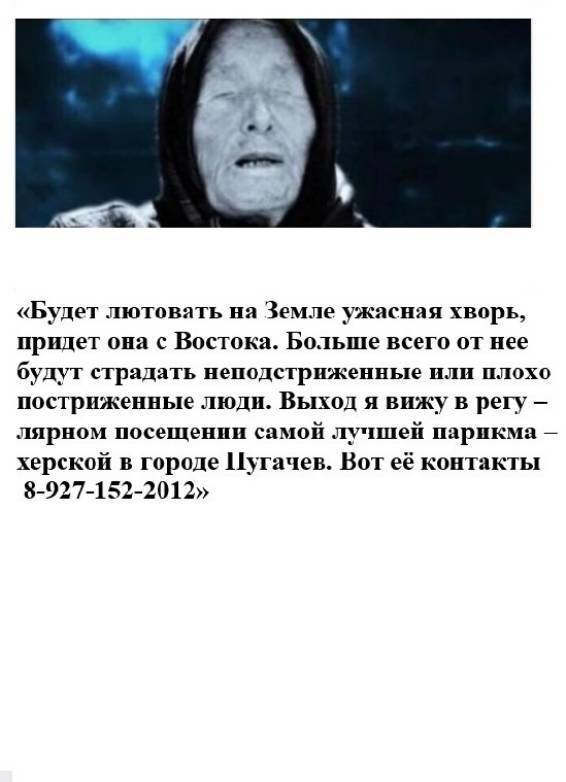 Та же ситуация сейчас происходит. В интернете всякие бредни под "авторством" Ванги выкладывают про двух объединившихся братьев, про яростного дракона (Китай), про жующую дерьмо экономику запада и т.д.