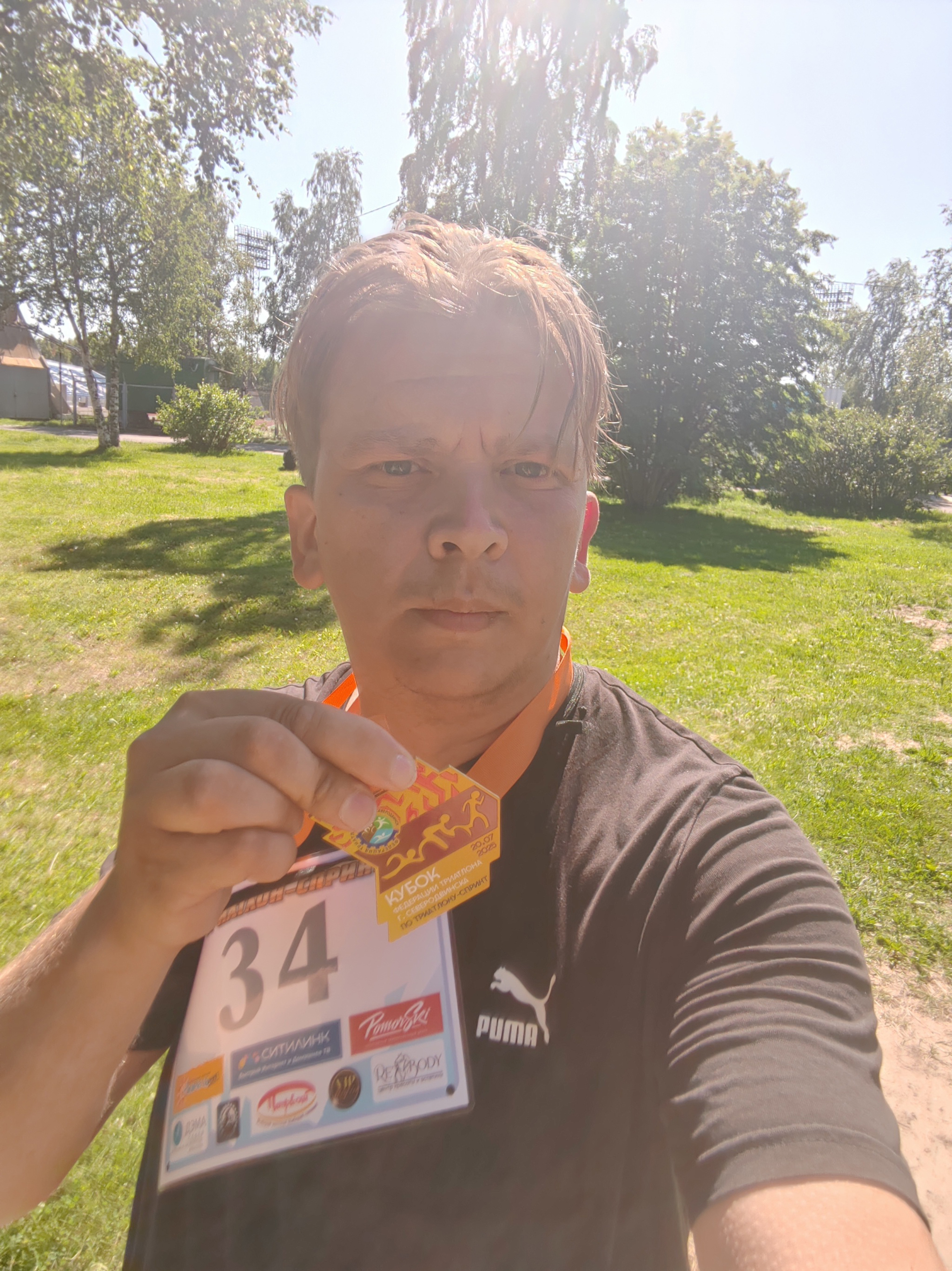 Участвовал в триатлон-спринте в славном городе Северодвинске.Старт был от озера Белое,и финиш стадион Север.Очень скромное время 2часа две минуты.Но я сильно не спортивный человек,имею лишний вес,а последние 20лет жизни курил как паровоз,и прочее)