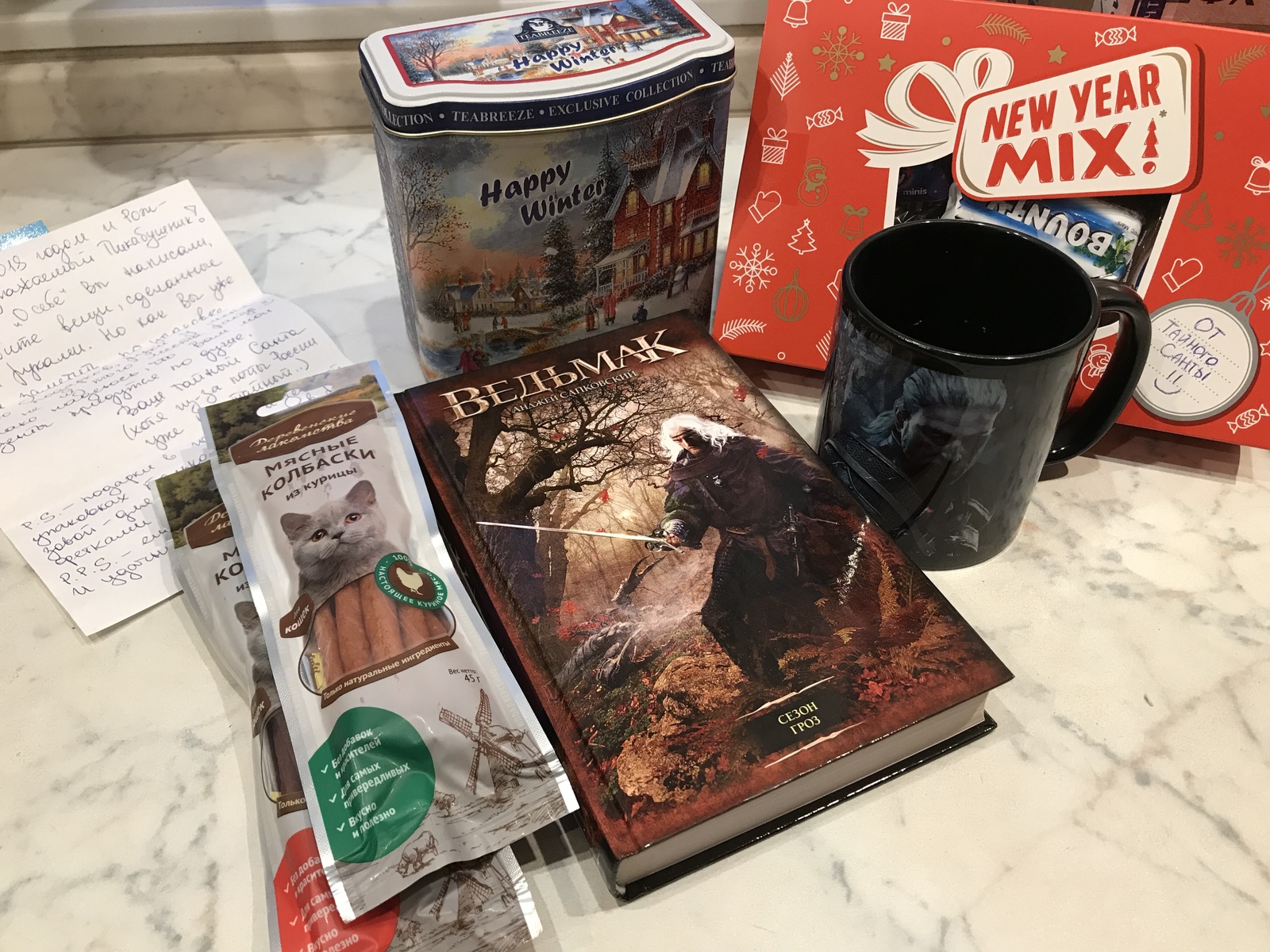 Ну а теперь возьмемся и за мои индивидуальные подарки. И... ДАААААААААА!!! Мой любимый Ведьмак!!!! Нет повода не перечитать, попивая новый чай из новой кружки, заедая новыми конфетками!