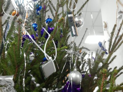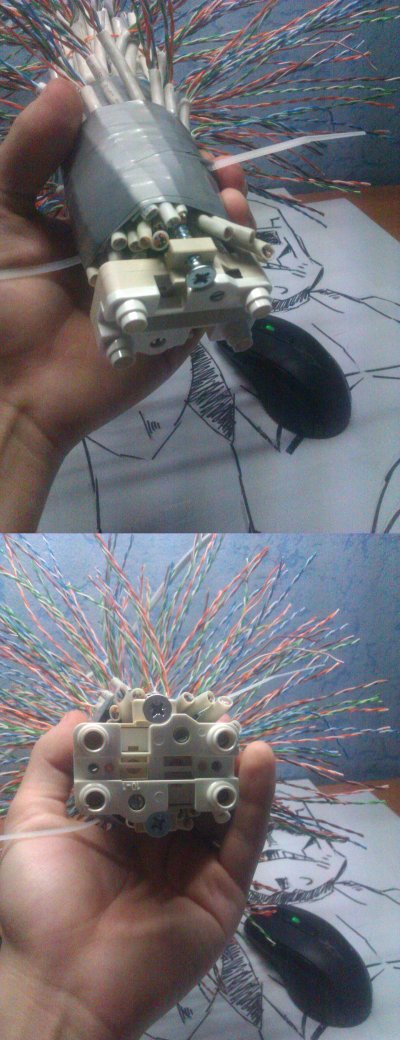 если делать подобную тематическую ёлку с украшениями,то подумай о моей идеи.Я когда коврик пытался сделать с подсветкой светодиодной,от нефиг делать вставил светодиод в коннектор (RJ45),светик был трёхцветный (сам по себе загорался красным,синим,зеленым) получилось что светодиод подсвечивал сам коннектор,не хуже лампочки с гирлянды. Можно светодиоды напаять на конец кабеля,одеть коннектор и подать ток,думаю должно получится 1.симпатично (особенно в темноте) 2.тематически (витуха и коннекторы,всё как доктор прописал)