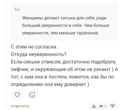 но, вангую, если ей привести пример - ответит она в присущей ей манере о том, что леди гага - бот. или бесталанная. или врет. ну, собственно, как и любая женщина, которая говорит об ином опыте #comment_309992107