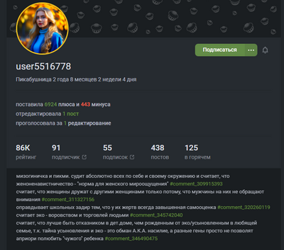 Удивляет, что у нее при этом большой рейтинг, хотя почти все посты и комменты заминусованы.