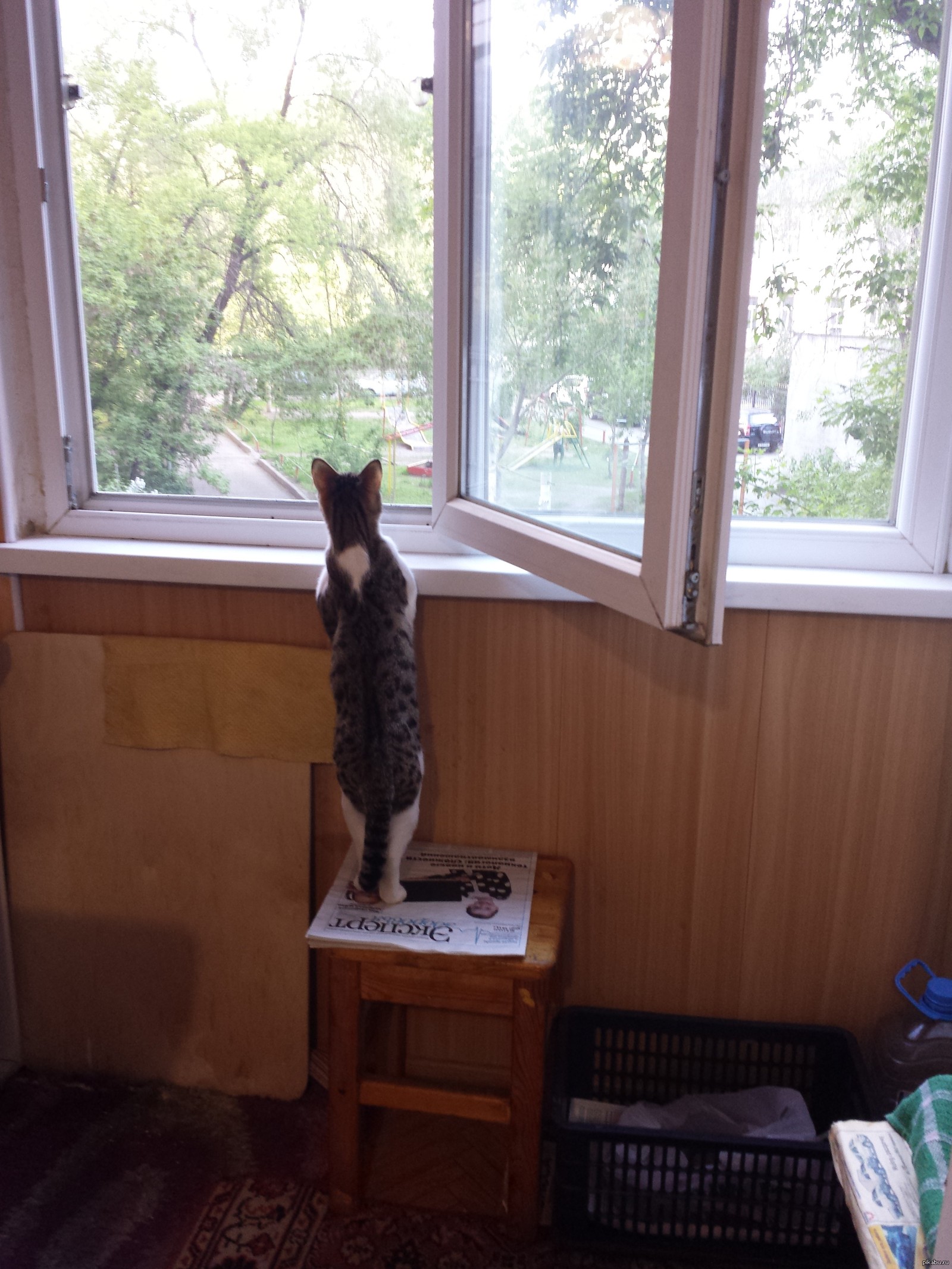 А вот так стоит мой кот :3
