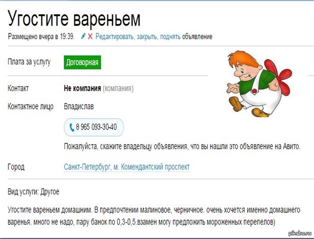 plywooder Юмор А все-таки он существует! 10 лет назад Авито Юмор Варенье Текст Не мое Объявление Лига добра