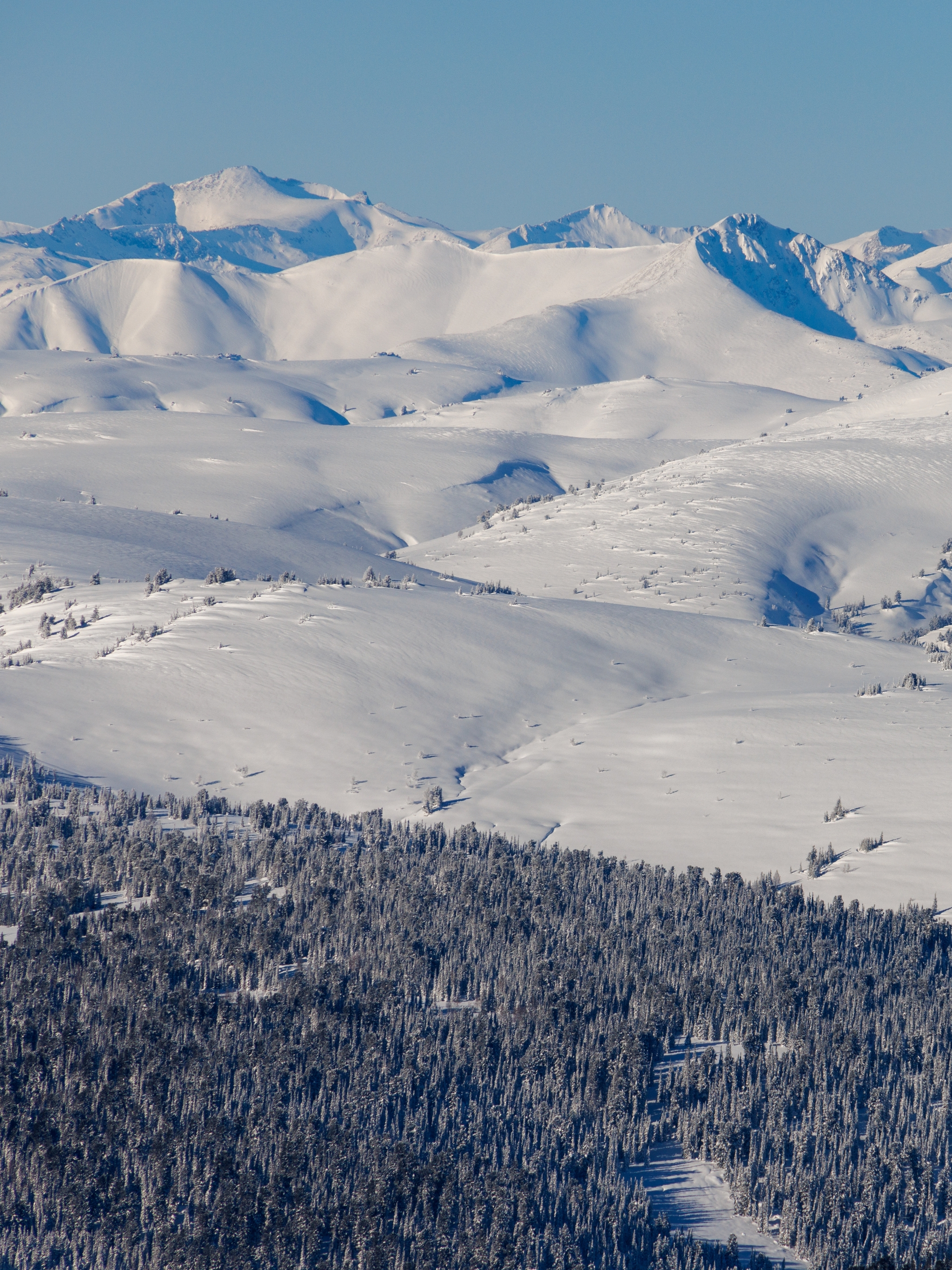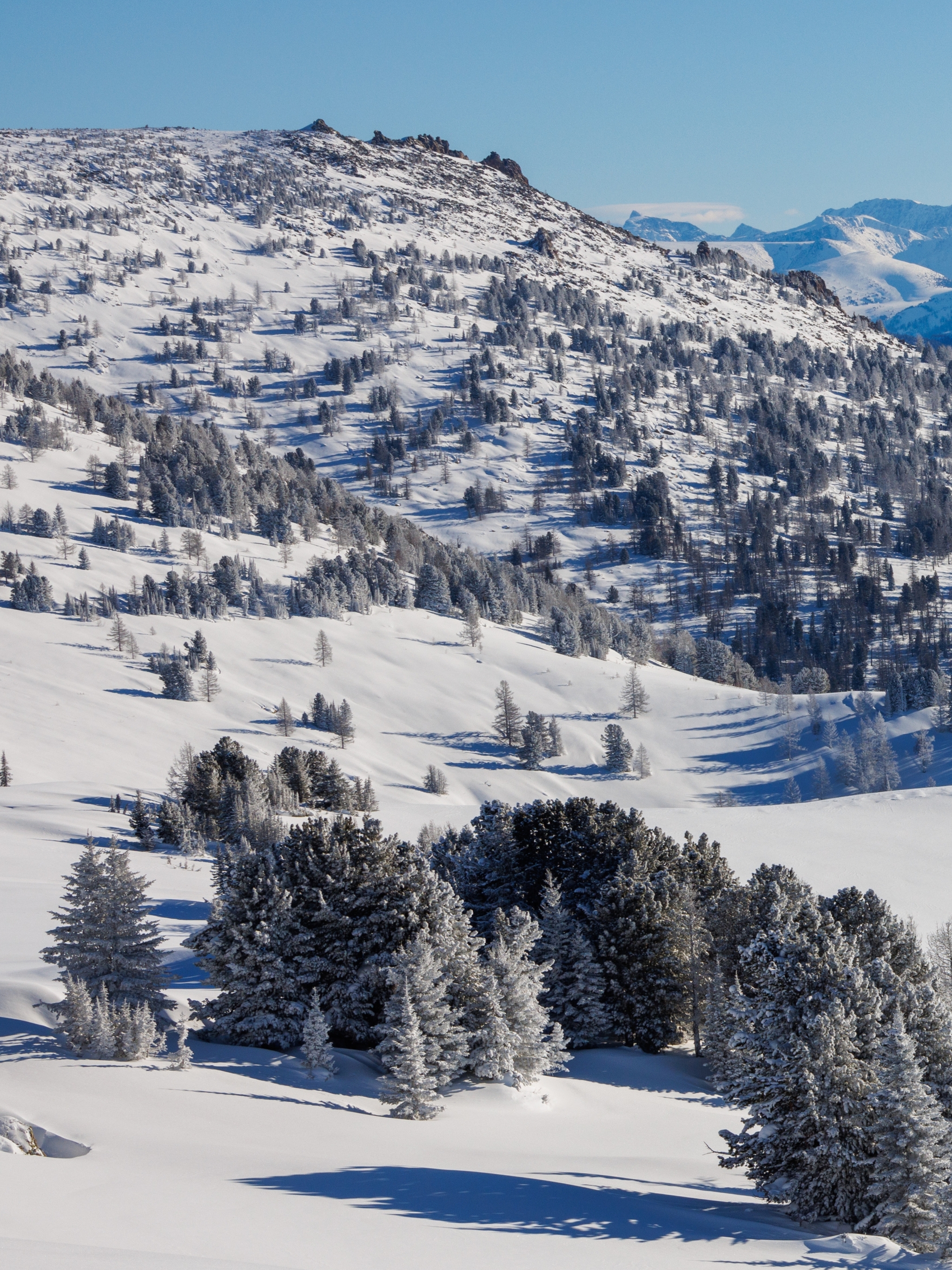 Проехав через весь Алтай до этого места, был удивлен, что на большое части Алтая нет снега, а горы покрыты как щетиной осыпавшимися лиственницами и маральником. Глаз мягко говоря не цепляет..