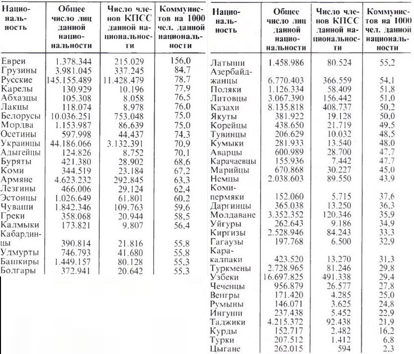 Доля коммунистов в таблице посчитана на всё население каждого народа по переписи 1989г