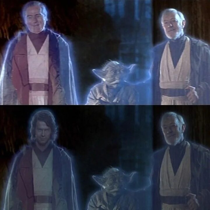 Так там шестую часть перемонтировали так то, заменив Энакина Себастьяна Шоу на Энакина Хейдена Кристенсена. А вообще я четвертый эпизод первый раз в озвучке Михалева смотрел. 😂