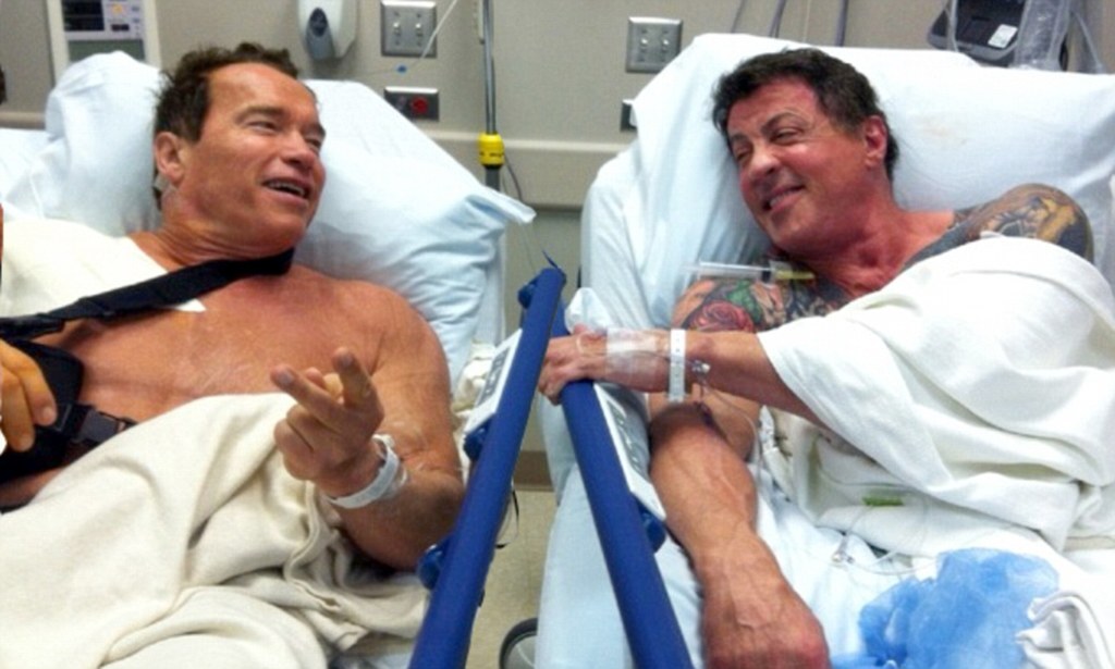 7. Два настоящих титана Голливуда, Сильвестр Сталлоне и Арнольд Шварценеггер оказались в одной и той же больнице, в одно и то же время и с одинаковой проблемой - травма плеча. У Слая левое, а у Арни правое. Одно из безумных совпадений.