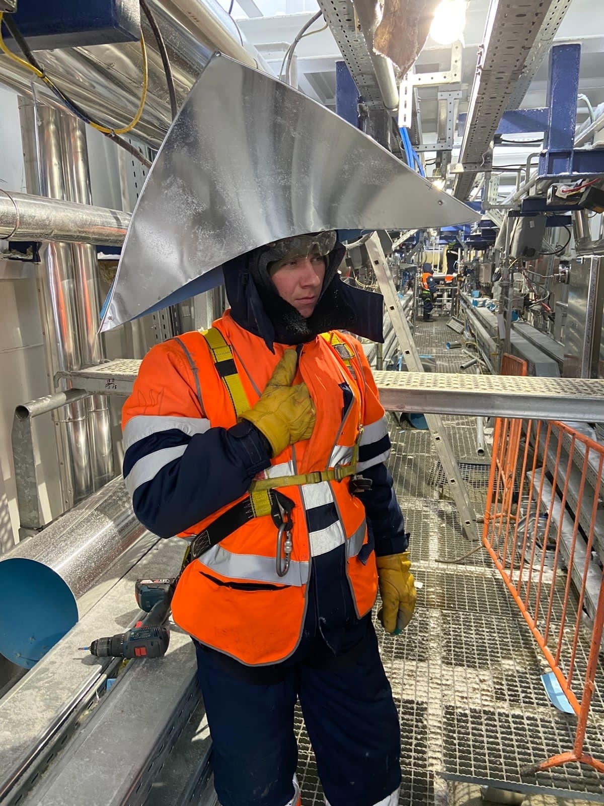 Специалист по охране труда, извините за вопрос, но где хлястик на каске? Вы еще и на высоте находитесь, а вот страховочного пояса на вас тоже не видать