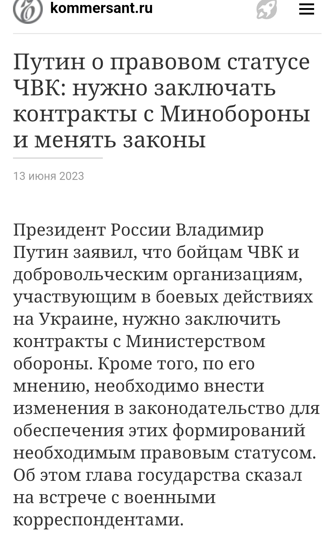 Добровольнические отряды и ЧВК переданы под контроль МО, это да. Вот только контракты там разные.